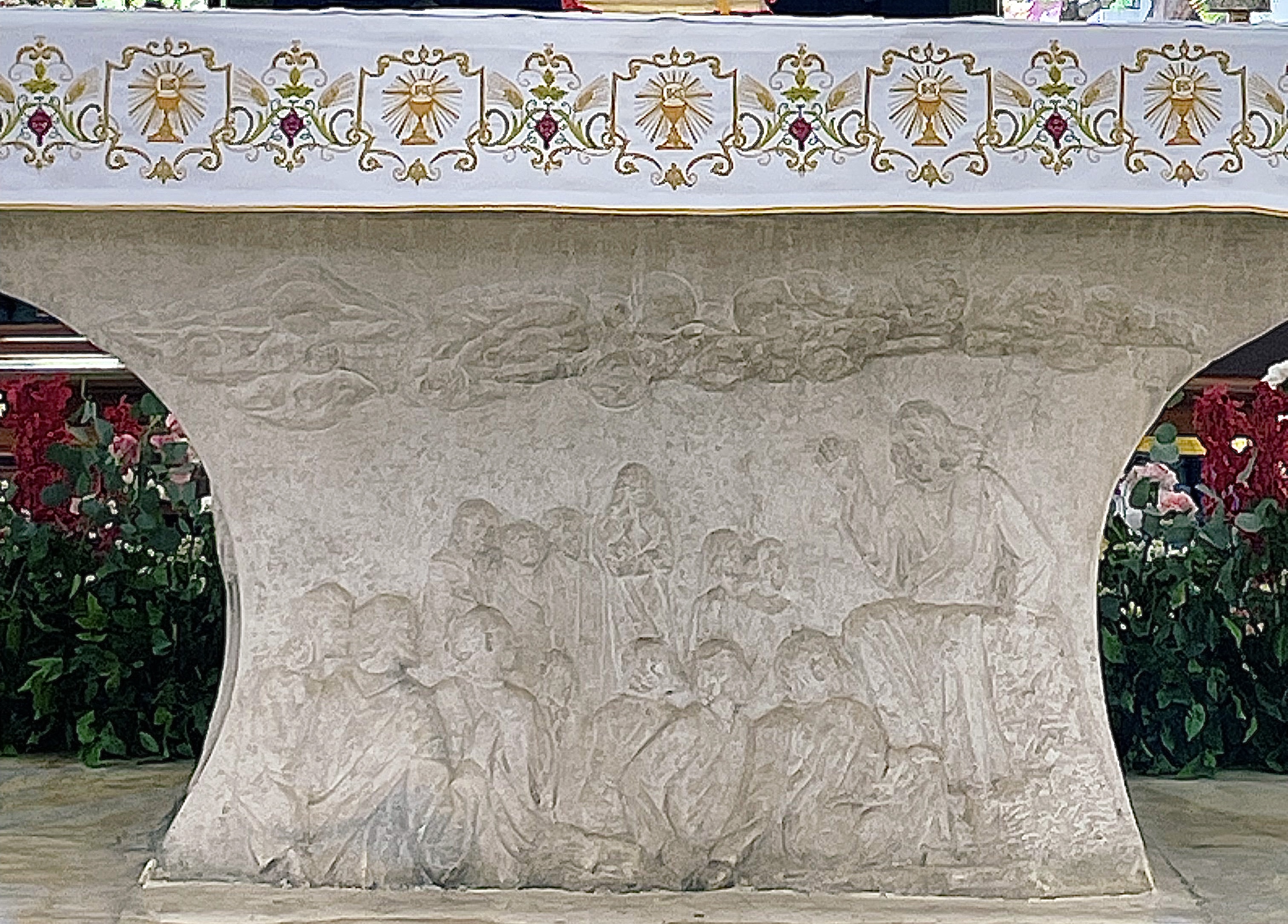 Directly beneath stands the Prestól, the marble altar table Abueva completed twenty-two years later after he created the crucifix, in 1957. Its reliefs depict The Sermon on the Mount on one side, and scenes of Christian community on the other. Illuminated by the soft light filtering through the oculus above, Abueva’s installments evoke a profound imagery between suffering and glory, pain and redemption; transforming my every visit into an enriching meditation on the mystery of faith.