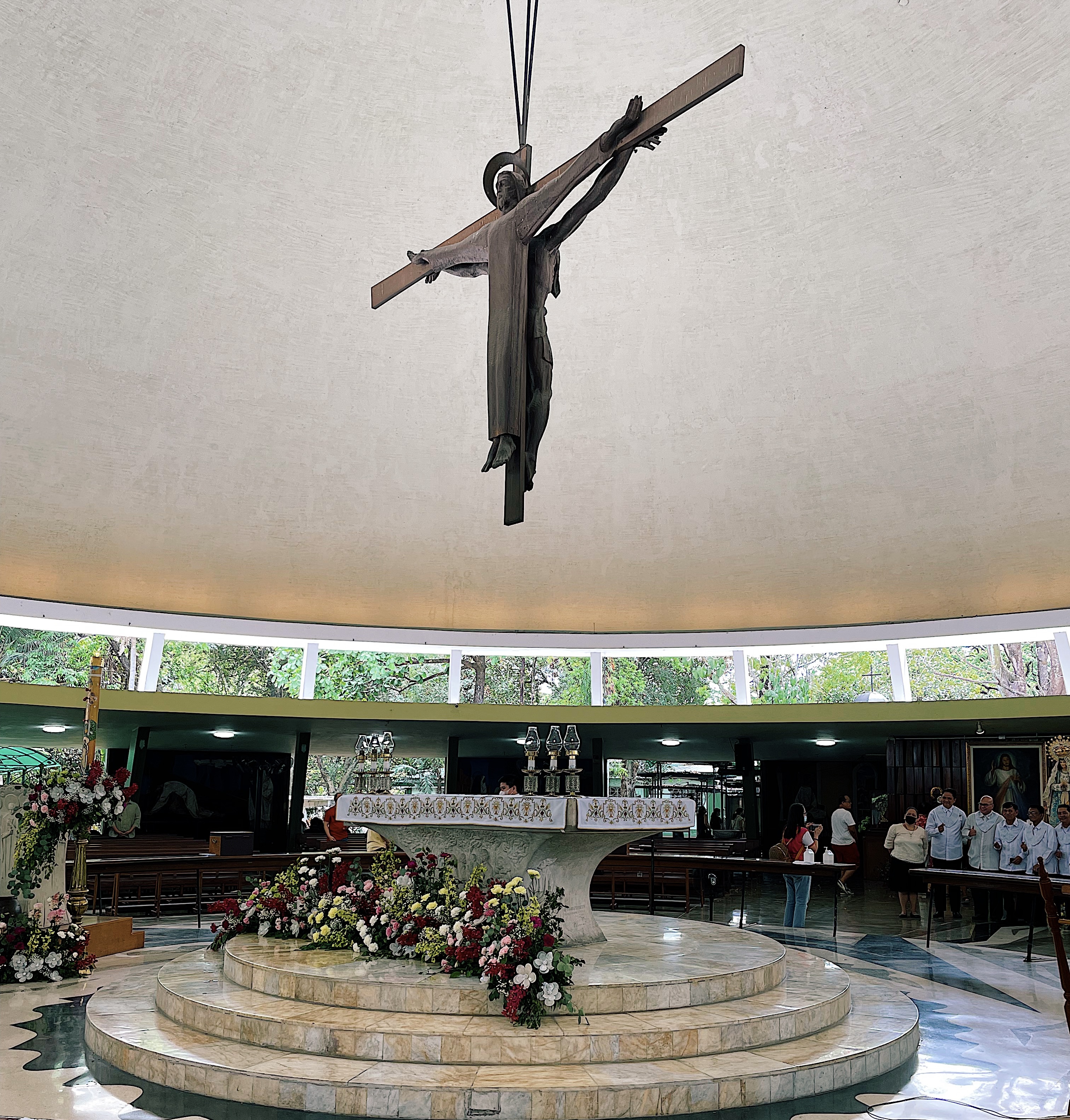 National Artist Locsin’s 1955 design was inspired by traditional Filipino sensibilities reinterpreted through post-war aesthetics. Its radical circular plan defied the traditional Baroque and Gothic influenced designs familiar to many Catholics, as well as the linear orientation of the Catholic rites. But that defiance was deliberate. Locsin envisioned a church without corners, without hierarchy, so that the laity, us, encircling the altar, shared equal intimacy to the mystery of the Eucharist. And no doors, so that anyone seeking refuge feels welcomed and invited, anytime.